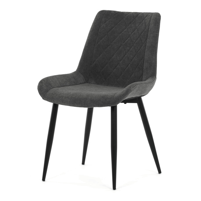 Jídelní židle s čalouněním v šedé látce nabízí pohodlné sezení díky ergonomicky tvarovanému sedáku a opěradlu s designovým prošitím, které zároveň dodává moderní vzhled. Pevná kovová podnož v černém provedení zajišťuje stabilitu a dlouhou životnost. Absence područek umožňuje snadné zasunutí židle pod stůl a šetří prostor v jídelně. Židle je vhodná pro každodenní použití v domácnostech i komerčních prostorách. Její jednoduchý, ale stylový design se snadno kombinuje s různými interiérovými styly.